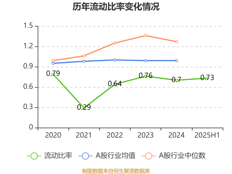 2025年上半年,公司流动比率为0.73,速动比率为0.72。
