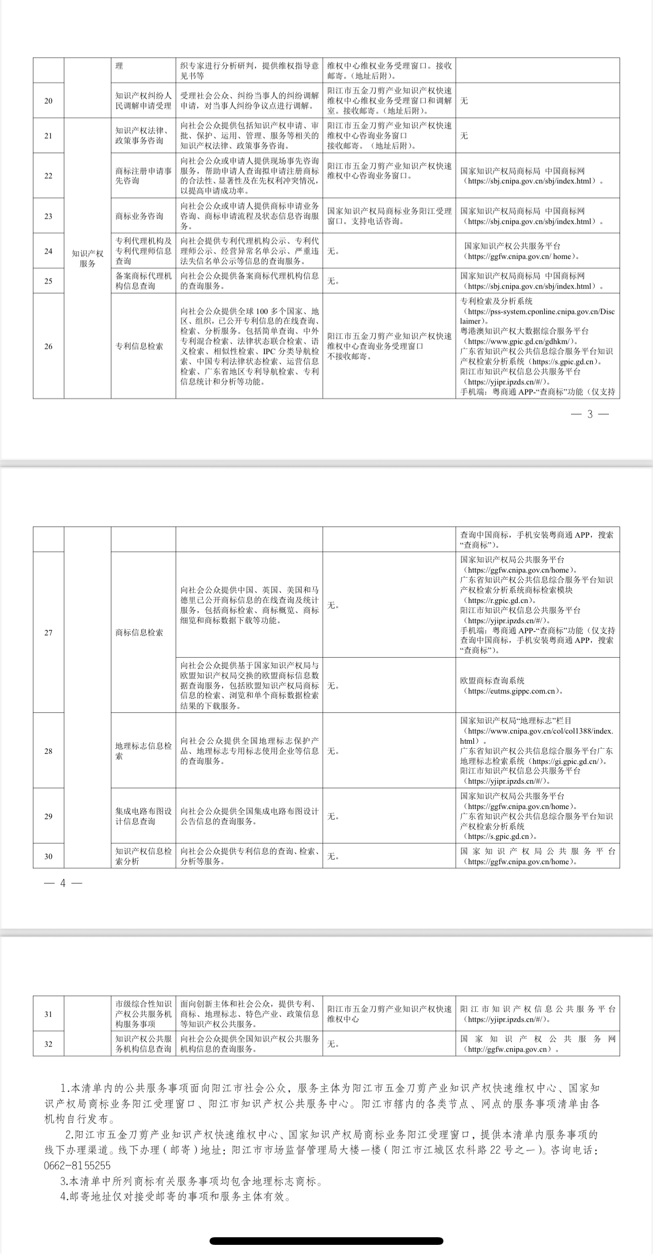 清单《第三版》全面梳理了阳江市知识产权公共服务职能,聚焦创新驱动发展战略,通过服务流程重塑、资源整合升级,在原有基础上新增“专利申请驳回复审申请”“专利无效宣告申请受理”“海外维权申请受理”“商标注册申请事先咨询”“市级综合性知识产权公共服务机构服务事项”等5项事项。更新后,服务事项增至33项,催化了知识产权公共服务“碎片化”到“菜单化”进程。其中,新增的海外维权申请受理服务事项,首次实现我市知识产权公共服务与国际规则深度接轨,为阳江企业“出海”保驾护航。